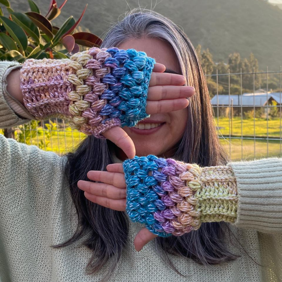 Confeccionados a mano con hilado hipoalergénico, son suaves, livianos y perfectos para quienes aman un estilo vibrante y femenino. ¡Ilumina tus días fríos con un arcoíris en tus manos!